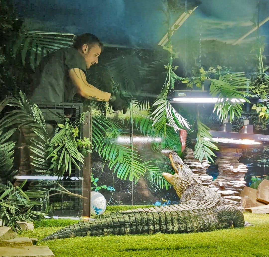 🐊 *Live Feeding Show* - Watch Lacoste, our football-loving American Alligator, enjoy his feast!